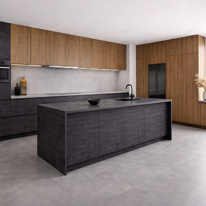 ام دی اف کایزرهایم مدل 15086 با طرح مشابه سطح سنگ و سیمانی که با نقش خطوط روی آن نمای سنگ و سیمان را به زیبایی به تصویر میکشد. این ورق دارای رنگی سایه روشن از طیف طوسی است که به تنهایی یا به صورت ترکیب با دیگر ورقها قابل استفاده است. ام دی اف کایزرهایم 15086 برای استفاده در ساخت کابینت mdf و تزئینات اتاق، آشپزخانه، مراکز اداری و تجاری، آموزشگاهها و کلینیکها و غیره میتوان استفاده نمود.