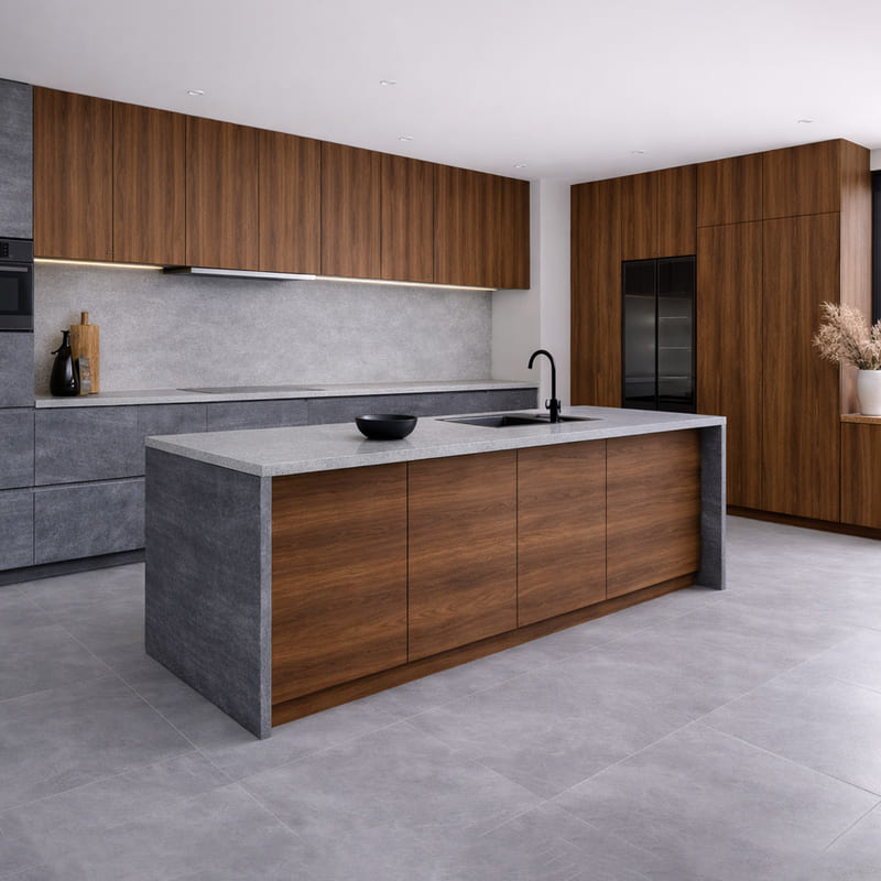 ام دی اف کایزرهایم مدل 15087 با طرح مشابه سطح سنگ و سیمانی که با نقش خطوط روی آن نمای سنگ و سیمان را به زیبایی به تصویر میکشد. این ورق دارای رنگی سایه روشن از طیف طوسی است که به تنهایی یا به صورت ترکیب با دیگر ورقها قابل استفاده است. ام دی اف کایزرهایم 15087 برای استفاده در ساخت کابینت mdf و تزئینات اتاق، آشپزخانه، مراکز اداری و تجاری، آموزشگاهها و کلینیکها و غیره میتوان استفاده نمود.